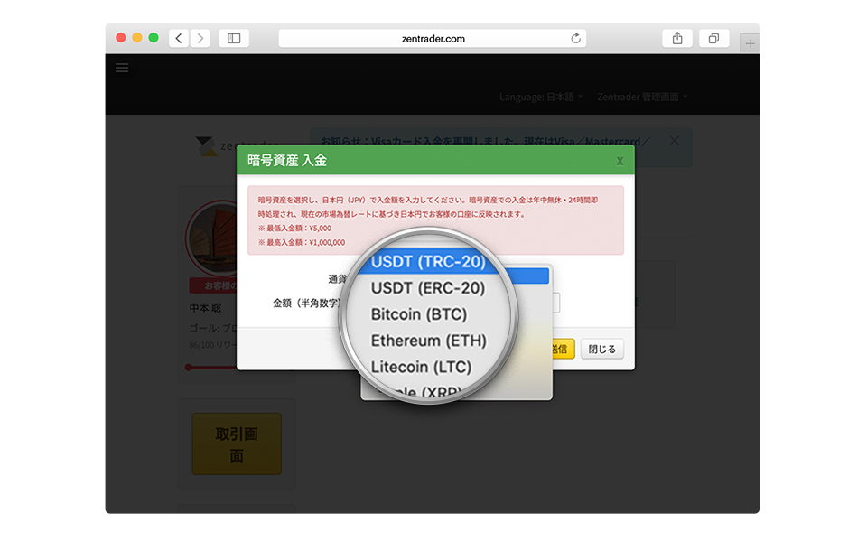 仮想通貨による入金方法|ゼン・トレーダーでの安全な暗号資産入金仮想通貨による入金方法|ゼン・トレーダーでの安全な暗号資産入金